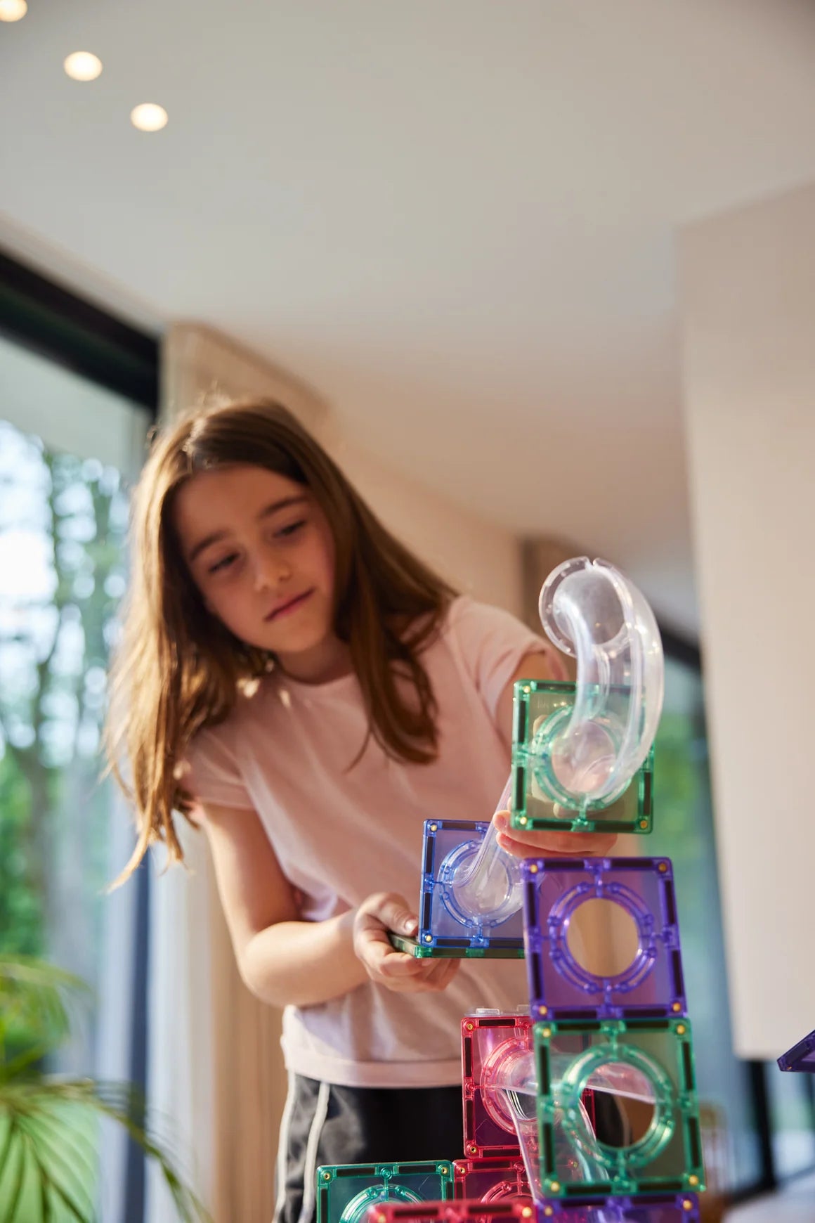 Diese Cleverclixx-Kugelbahn in Pastelltönen besteht aus 70 Teilen. Der Bausatz ist ein guter Einstieg in das Bauen mit unseren Magnetbausteinen. Magnete haben etwas Magisches und sind sowieso faszinierend für Kinder. Ihr Kind kann beim Entwickeln toller Konstruktionen und Spielideen mit seinem Lieblingsbausatz von Cleverclixx seiner Kreativität und Fantasie freien Lauf lassen. Alle Bausätze sind miteinander kompatibel, das heißt jederzeit erweiterbar.