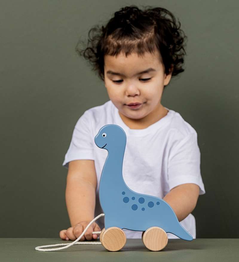 Der bezaubernde Dino aus Holz ist der perfekte Begleiter für Babys erste Schritte. Das klassische Nachziehspielzeug aus Holz hat robuste Räder aus Holz, die sanft über verschiedene Böden rollen und sich leicht ziehen lässt. Das Spielzeug hilft Kindern, das Gleichgewicht und die Hand-Auge-Koordination zu entwickeln.