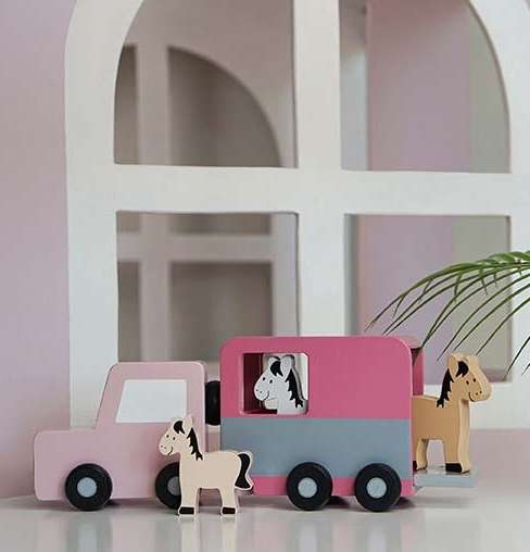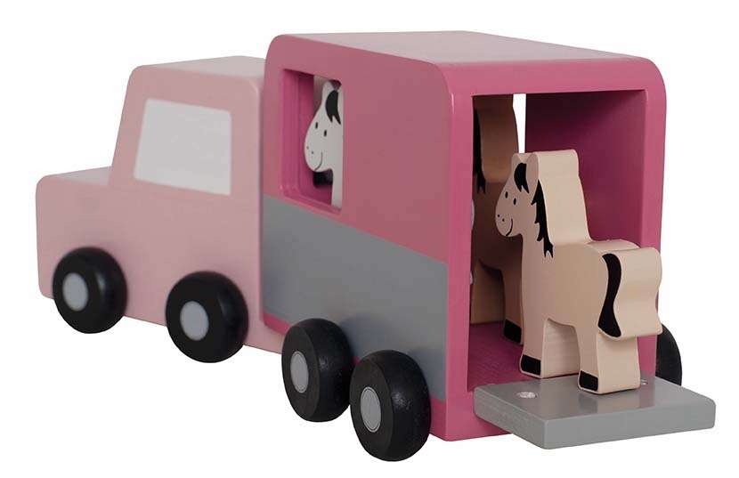 Pferdeliebende Kids werden mit diesem hübschen Pferde-Anhänger viel Spaß haben. 3 Pferde in unterschiedlichen Fellfarben haben in dem Anhänger Platz. Dieser lässt sich abnehmen, so dass auch mit dem Auto allein gespielt werden kann. Ein Rollenspiel, das über viele Stunden Spaß macht und die Fantasie und Kreativität der Kinder anregt.
