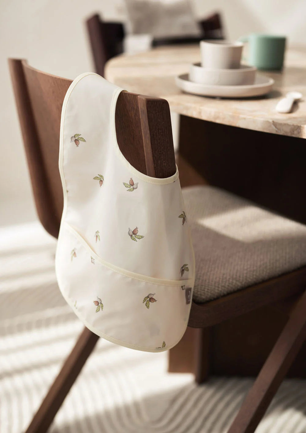 Das wasserdichte Lätzchen wird hinten mit Klettverschluss geschlossen. Dieser bleibt an Ort und Stelle, sodass dein Baby das Lätzchen nicht leicht abnehmen kann. Das Lätzchen kann mit einem feuchten Tuch abgewischt werden.