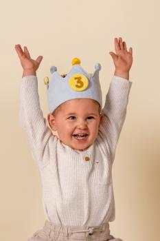 Hipp, hipp, hurra! Feiere deinen Geburtstag stilvoll mit dieser niedlichen Geburtstagskrone und sprühe etwas Feenzauber über deinen besonderen Tag. Sie können die Zahl jedes Jahr von 1 bis 5 ändern, damit die Krone mit jedem Geburtstag Ihres Kindes größer wird. Wählen Sie die Geburtstagszahl, setzen Sie Ihrem Kind die Krone auf und halten Sie diese kostbaren Momente fest! Oder entscheiden Sie sich für das Blumenemblem, wenn Ihr Kind jeden Tag der König oder die Königin des Wunderlandes sein möchte. Die Krone besteht aus weich gepolstertem und geripptem Stoff in Rosa und bunten Pompons. Dank des Klettverschlusses wächst die Krone mit Ihrem Kind mit. Schauen Sie, wie stolz Ihr Kind die Krone trägt und mit jedem Lächeln und Kichern sein Alter zeigt. Alles Gute zum Geburtstag!