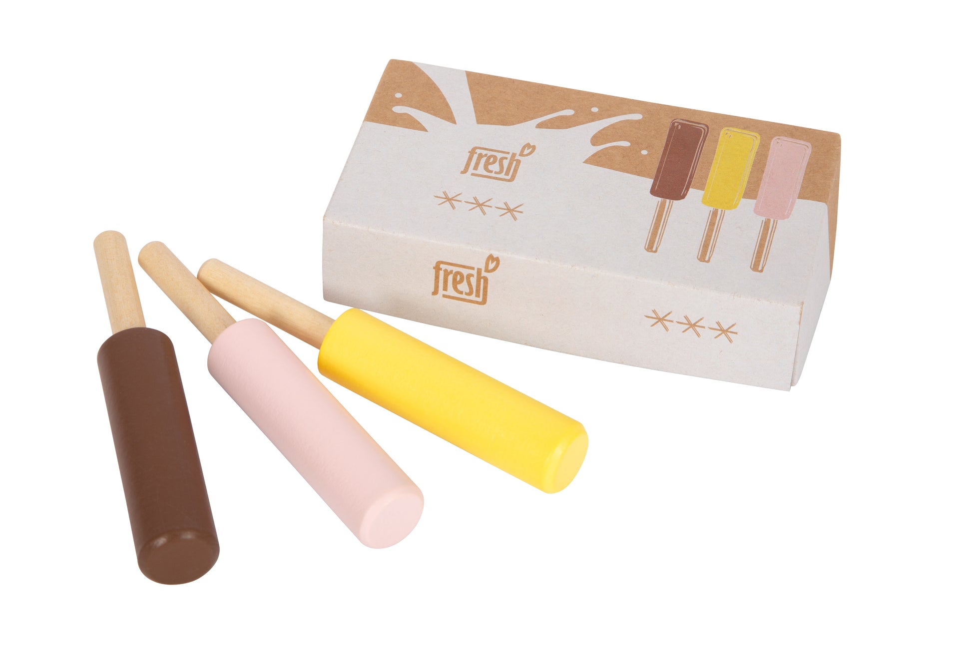 Leckeres Eis ist zu jeder Jahreszeit der Hit im fantasievollen Rollenspiel in Kaufladen und Kinderküche! Zusammen mit weiteren Spiellebensmitteln der Produktlinie „fresh“ ist langlebiger Spielspaß mit Spiellebensmitteln aus Holz garantiert.