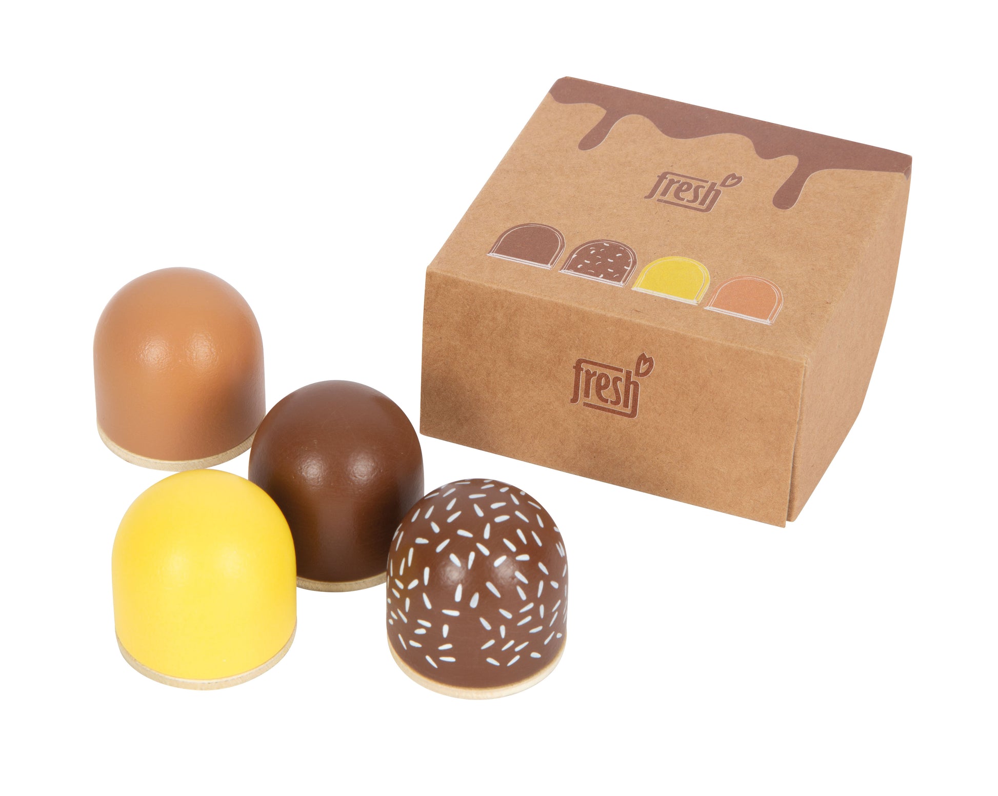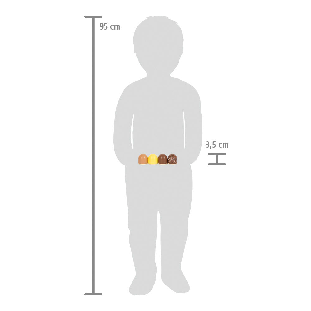 Die kleinen Schaumküsse sehen fast aus wie die echten und lassen die Kasse im Kaufladen garantiert klingeln! Im fantasievollen Rollenspiel können Kinder die Holz-Schokoküsse erst im Kaufladen einkaufen und sie anschließend in der Kinderküche oder beim Spiel-Picknick als Nachtisch präsentieren. Zusammen mit weiteren Spiellebensmitteln der Produktlinie „fresh“ ist langlebiger Spielspaß garantiert.