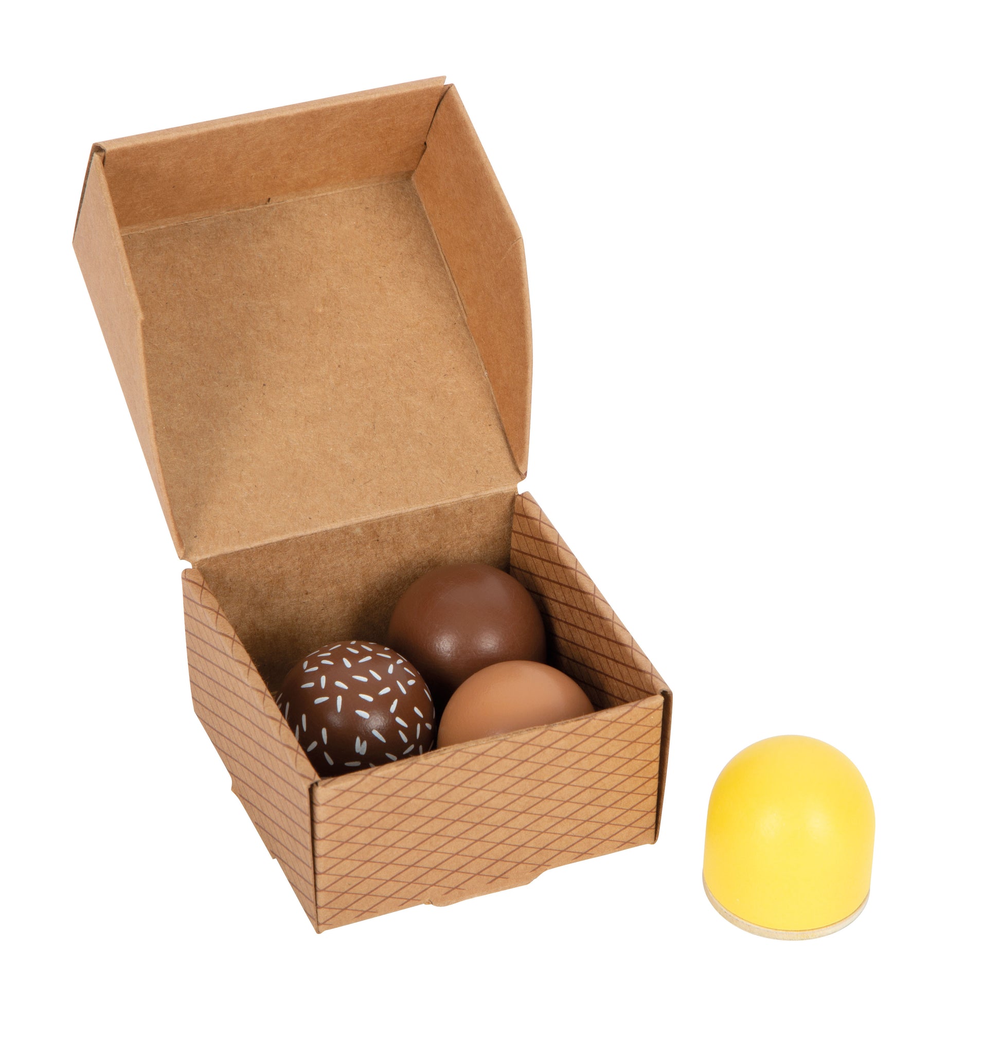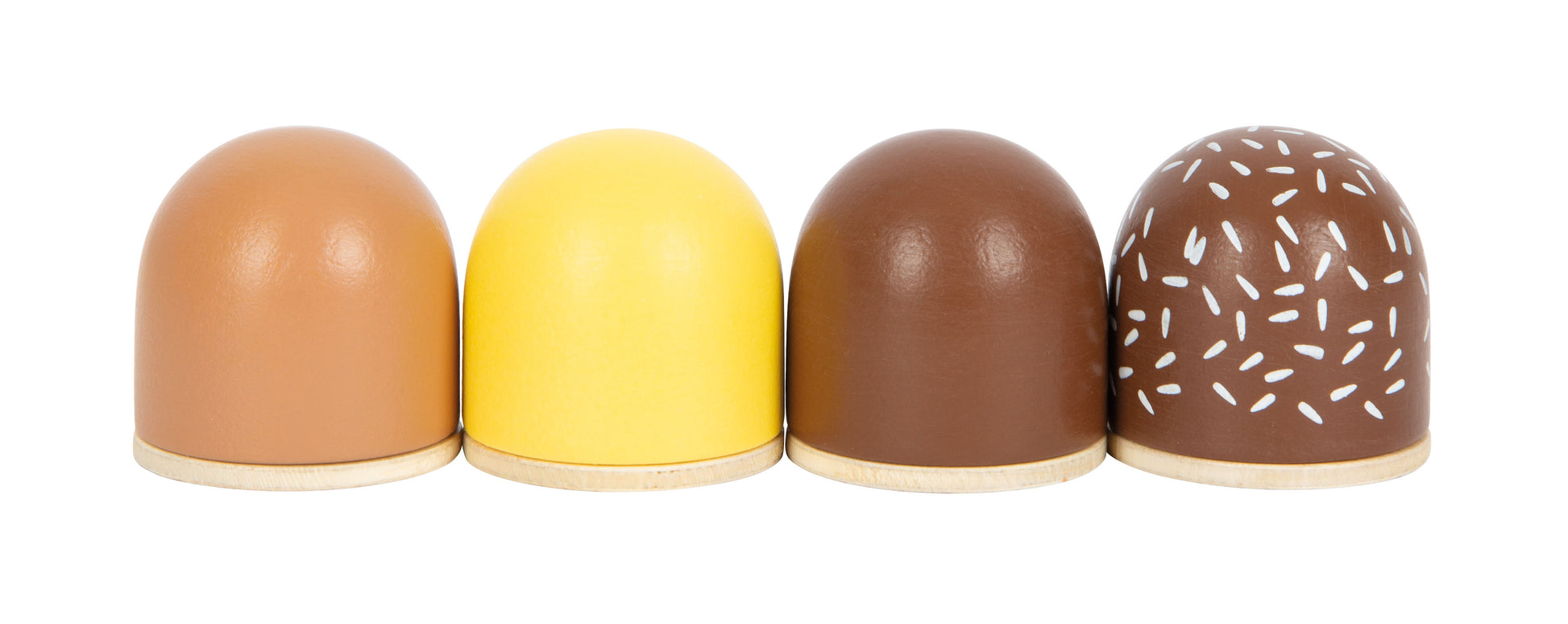 - vier Schokoküsse aus Holz für Kaufladen und Kinderküche